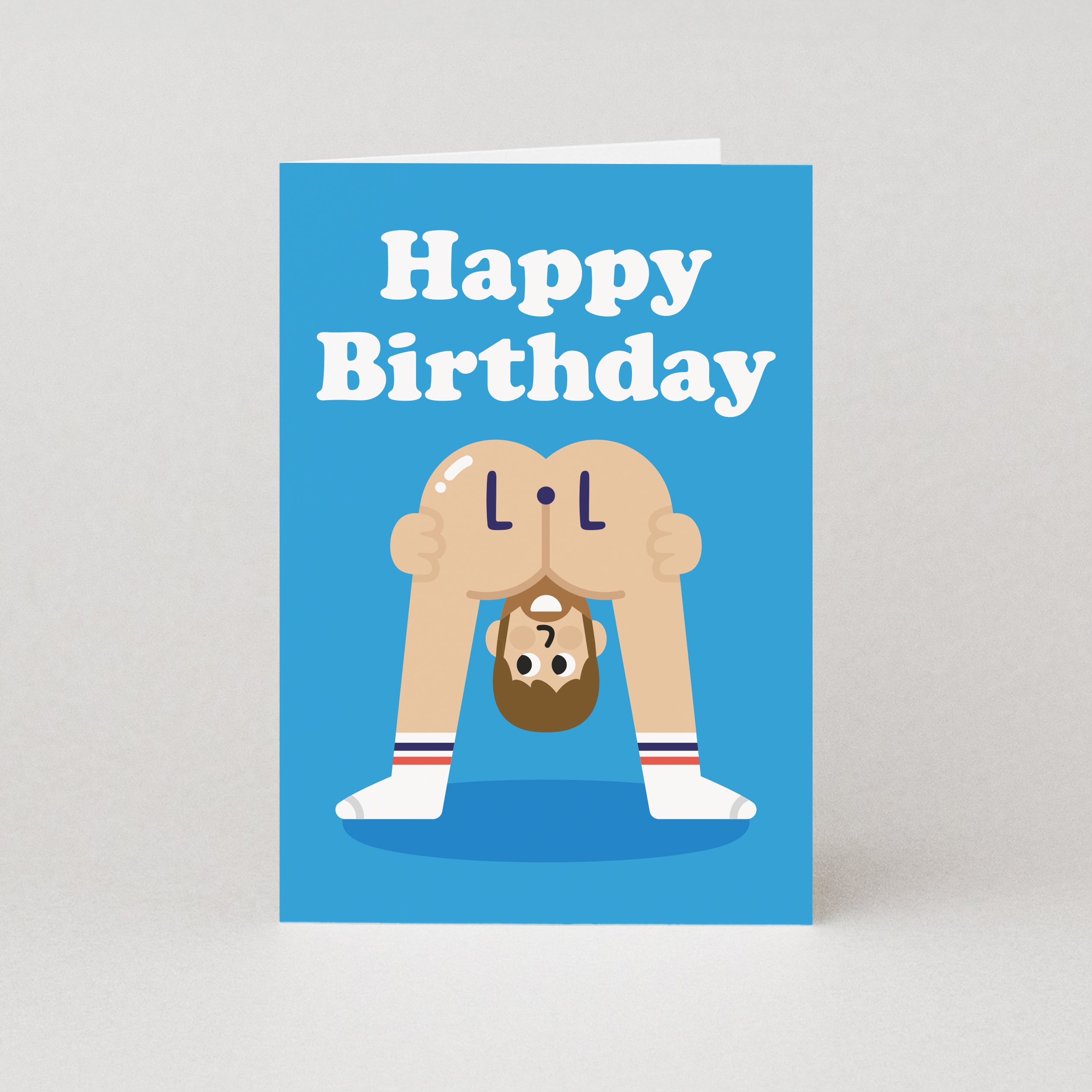 Celebrate another year older with a rude birthday card that features a bendy-over-bum design. Perfect for the birthday boy who doesn't take himself too seriously. Sure to make them LOL (literally).